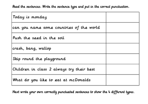 Identify Types Of Sentences And Punctuate Correctly Teaching Resources