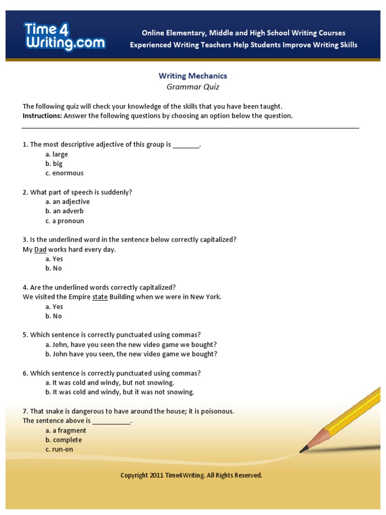 Grammar Quiz Pdf Comma Subject Grammar
